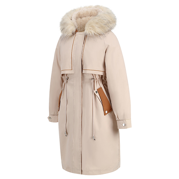 Fashion Contrast Color Artificial Fur Spliced Long Sleeve Drawstring Longline Coat