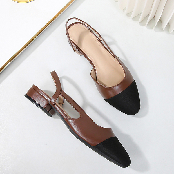 Fashion Contrast Color Block Heeled Slingback Shoes