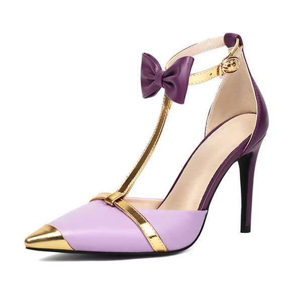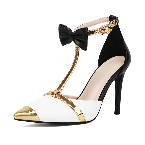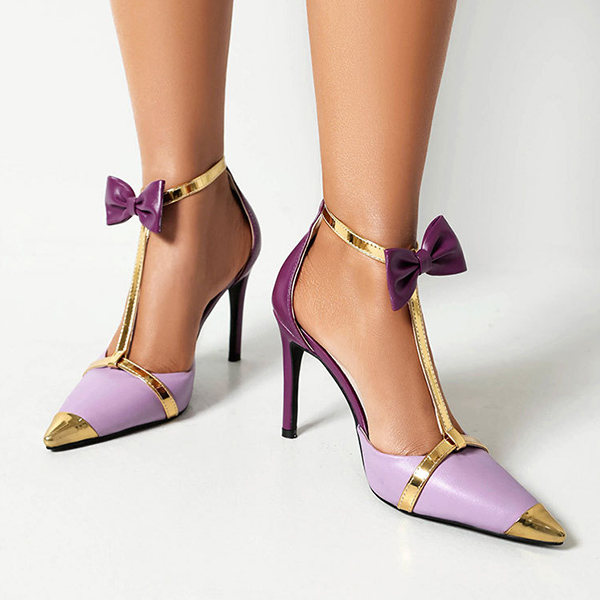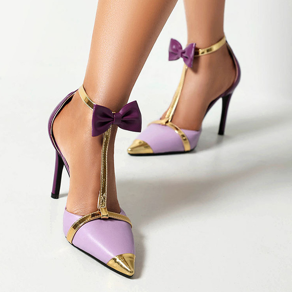 Chaussures à talons hauts avec noeud papillon contrasté à la mode