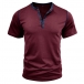 Fashion Contrast Color Button V-neck Short Sleeve Shirt for Men