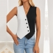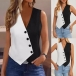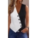 Fashion Contrast Color Button V-neck Sleeveless Vest