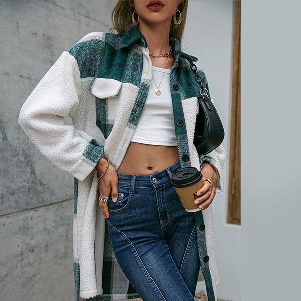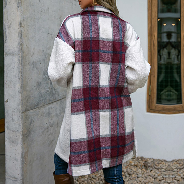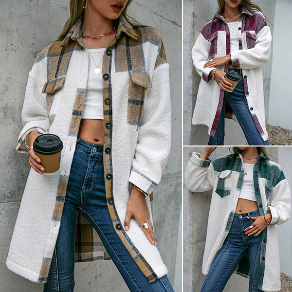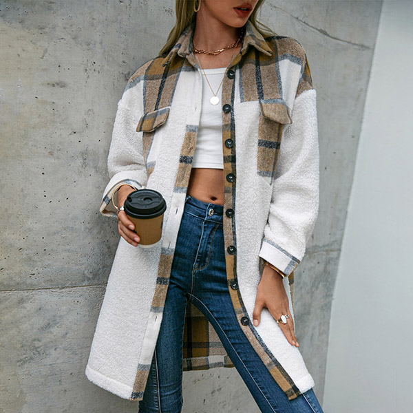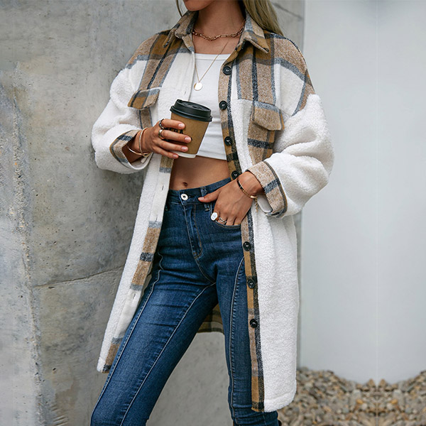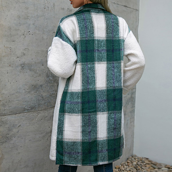This fashionable and stylish longline jacket is perfect for casual days! The checkered pattern and contrast colors are eye-catching and unique, and the long sleeves will keep you warm all day long.