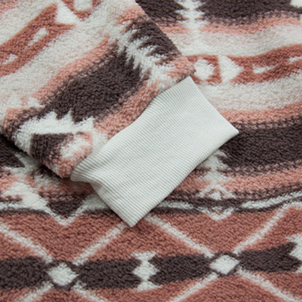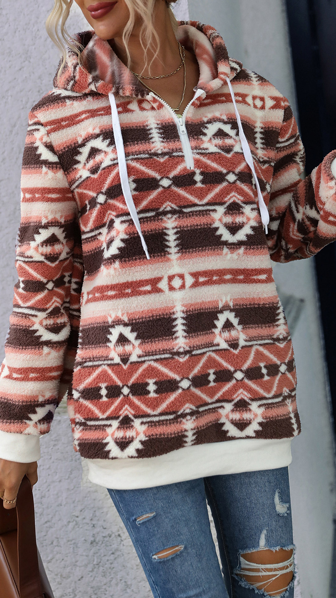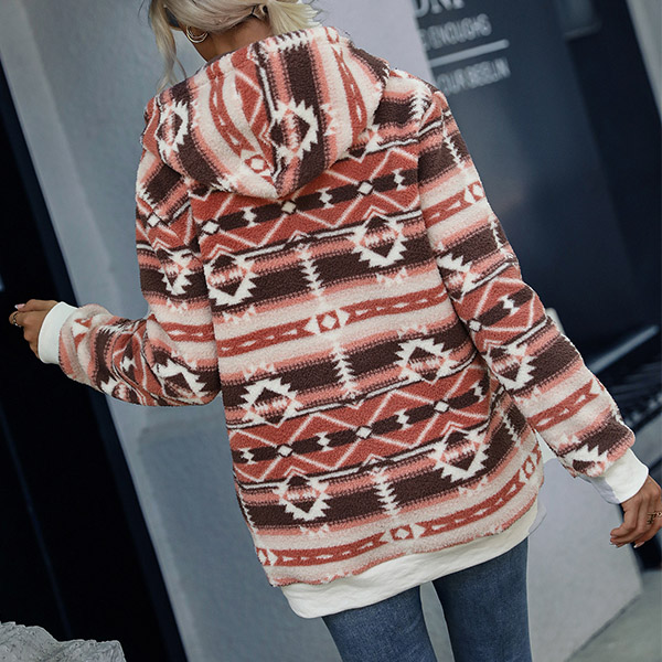 Fashion Contrast Color Christmas Geometric Pattern Print Long Sleeve Plush Hoodie Sweatshirt