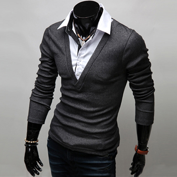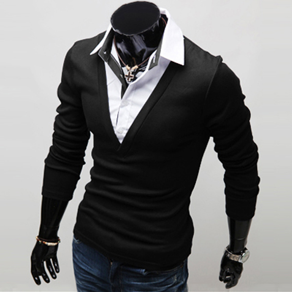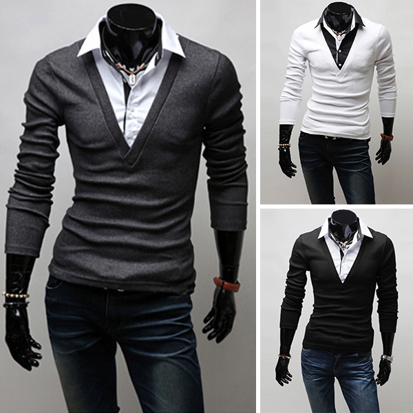 You can make your casual style have an updated with this t-shirt! Mock two-piece design makes this piece so