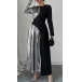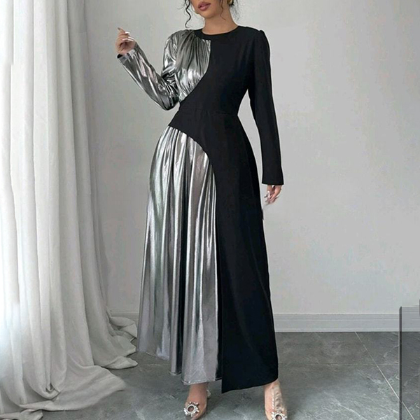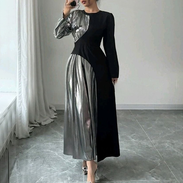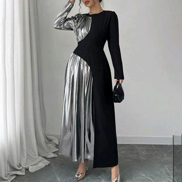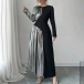Fashion Contrast Color Crew Neck Long Sleeve Maxi Dress