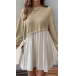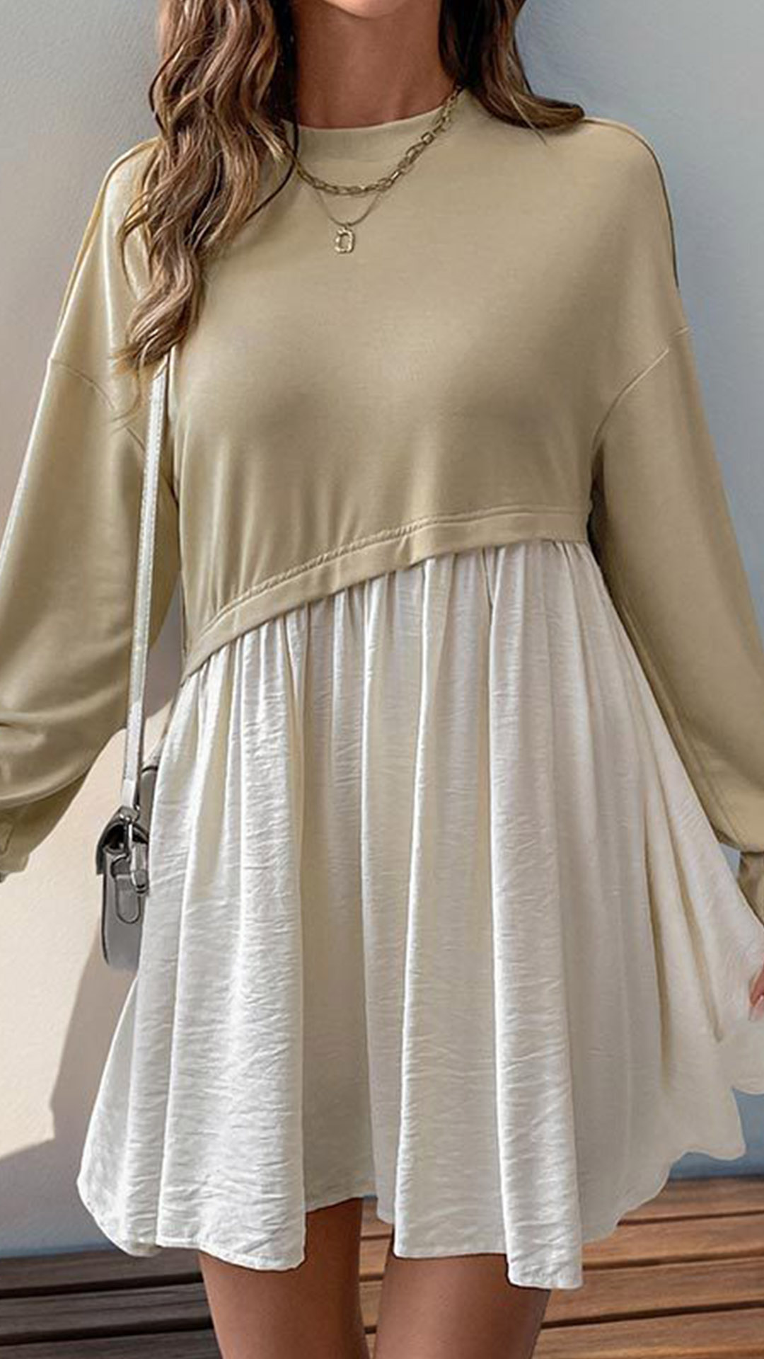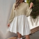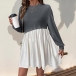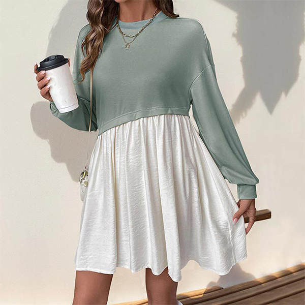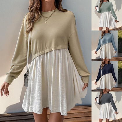 Fashion Contrast Color Crew Neck Long Sleeve Mini Dress