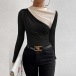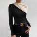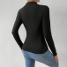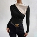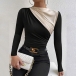 Fashion Contrast Color Crew Neck Long Sleeve Ruched Shirt