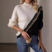 Ce pull élégant et captivant arbore un design de couleurs contrastées saisissant, ajoutant une touche de couleur ainsi qu'un intérêt visuel à votre tenue. Le col rond propose un décolleté classique et polyvalent, tandis que les manches longues assurent une couverture chaleureuse. Enrichi de paillettes, ce pull scintille et brille, le rendant parfait pour insuffler une touche de glamour à votre look.