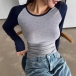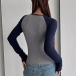Fashion Contrast Color Crew Neck Long Sleeve Shirt