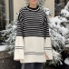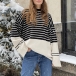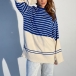 Fashion Contrast Color Crew Neck Long Sleeve Stripe Sweater