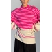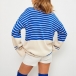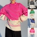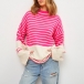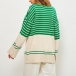 This trendy sweater features a crew neck, long sleeves, and a stylish contrast color stripe design, creating a fashionable and eye-catching look. The relaxed fit of the sweater ensures comfort and ease of wear, perfect for a casual day out or a laid-back weekend ensemble.