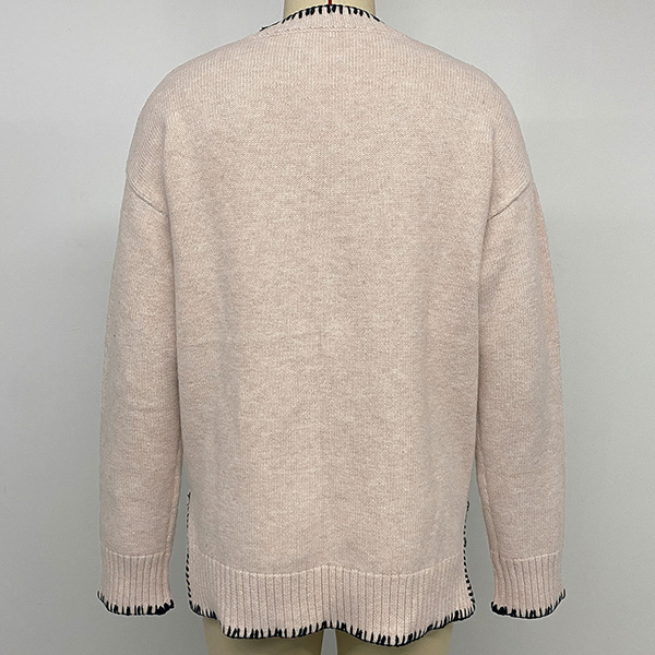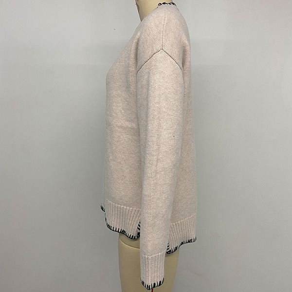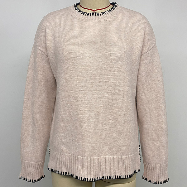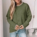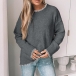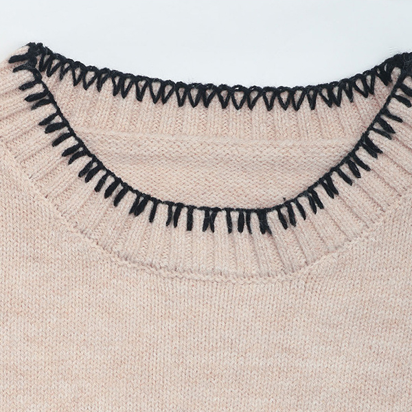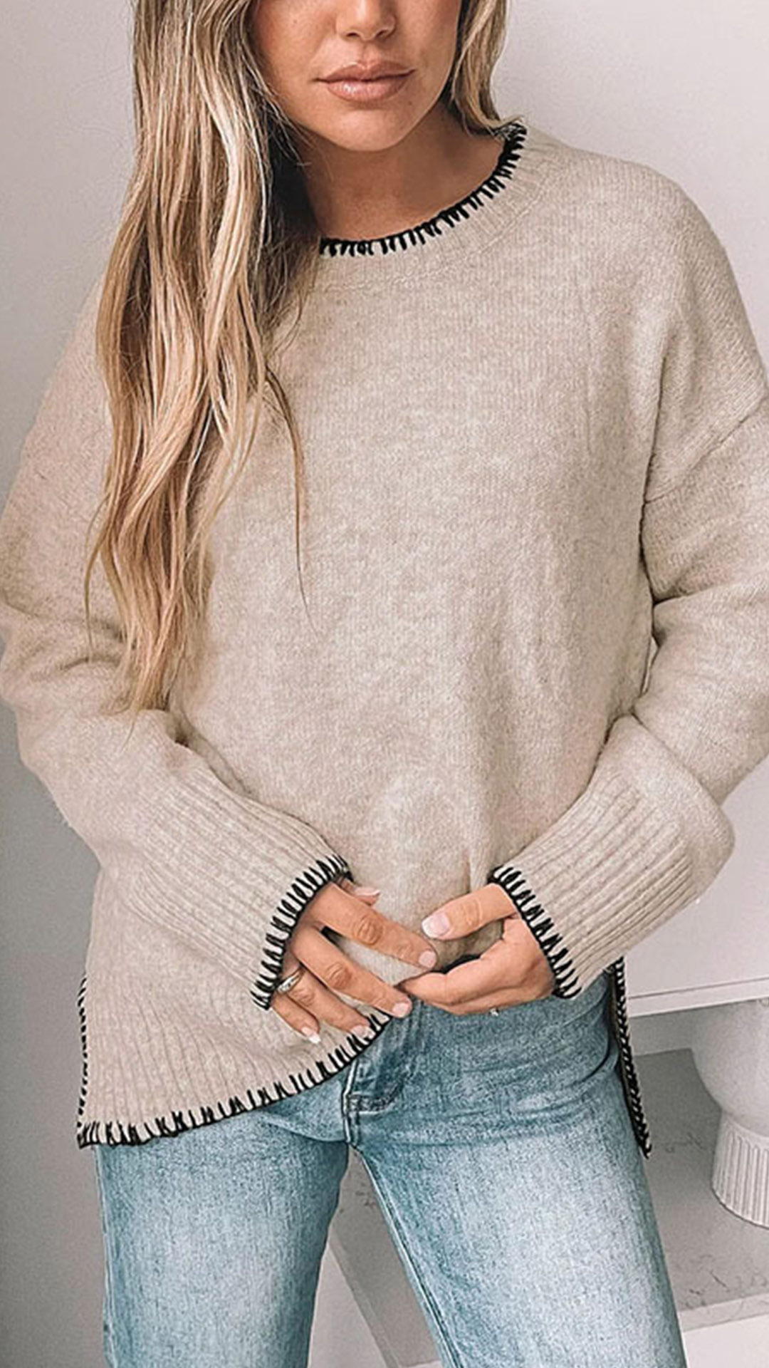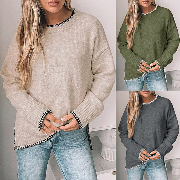 Make a statement with this contemporary sweater that brings modern edge to classic comfort. The eye-catching contrast color along the hemline details add visual interest while maintaining versatility for easy styling. Featuring a relaxed crew neck and strategic side slits for added movement, this piece offers a flattering silhouette that's both comfortable and chic. The trendy high-low hemline creates an effortlessly cool vibe that pairs perfectly with leggings, jeans, or your favorite skirt. Whether you're running errands or meeting friends for coffee, this sweater delivers laid-back sophistication with a fresh, updated twist.