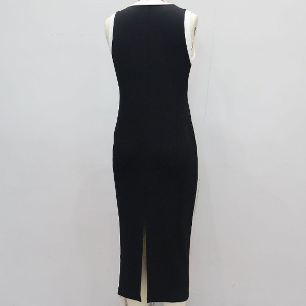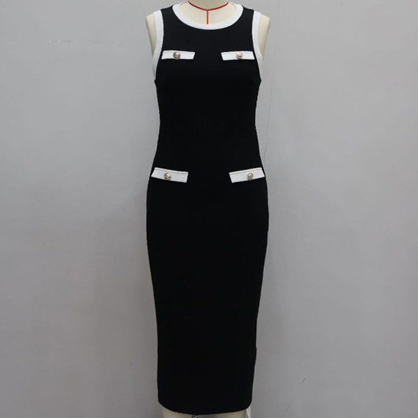 Fashion Contrast Color Crew Neck Sleeveless Bodycon Dress