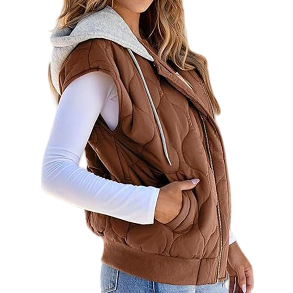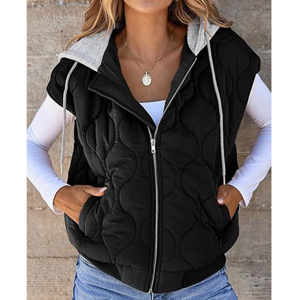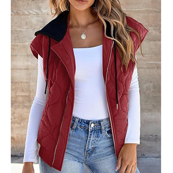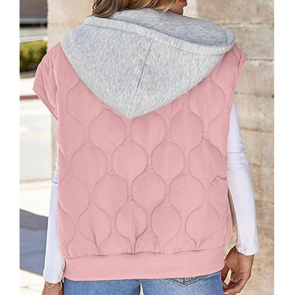 Fashion Contrast Color Detachable Drawstring Hooded Quilted Vest