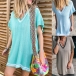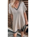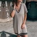 Fashion Contrast Color Dolman Sleeve V-neck loose Knit Dress