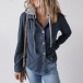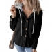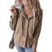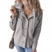 Fashion Contrast Color Drawstring Hooded Long Sleeve Patch Pockets Thin Jacket