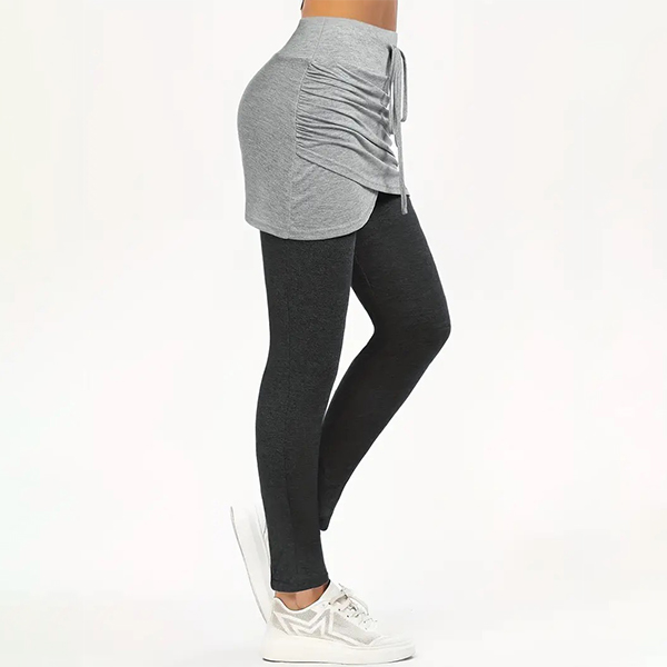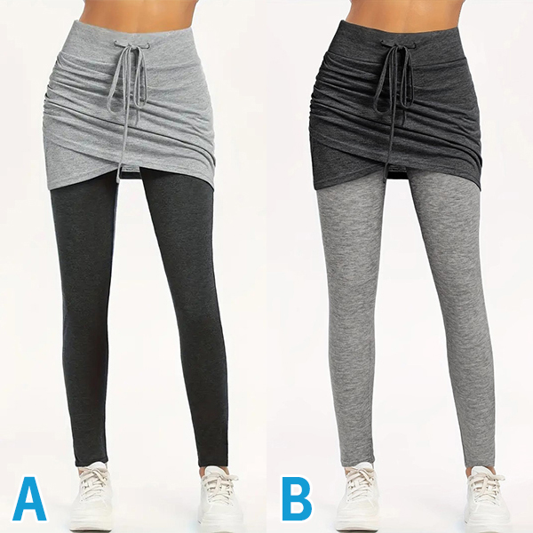 Make a statement with these Mock Two-piece Leggings. These unique leggings feature a mock two-piece design with a contrast color skirt and irregular hemline that adds a modern and edgy touch to your outfit. The drawstring waist allows for a customizable fit, while the comfortable stretch fabric ensures ease of movement. The trendy design is perfect for adding a fashion-forward element to your athleisure or casual wear. Whether you pair them with a crop top and sneakers for a sporty look or a cozy sweater for a laid-back vibe, these leggings are versatile and stylish.