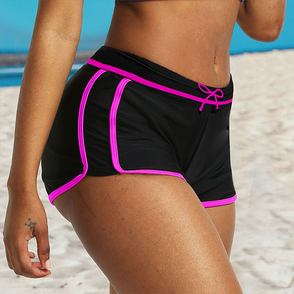 Fashion Contrast Color Drawstring Waist Swimming Shorts