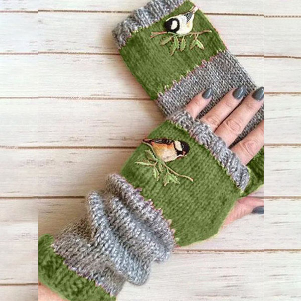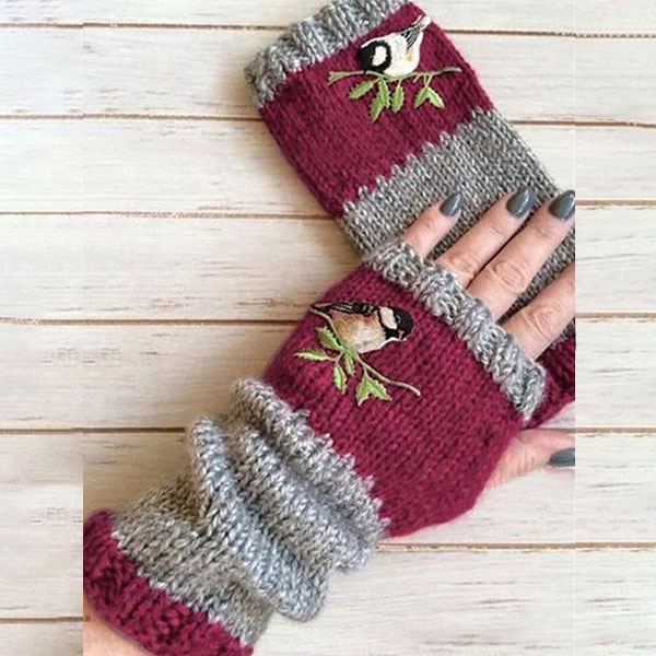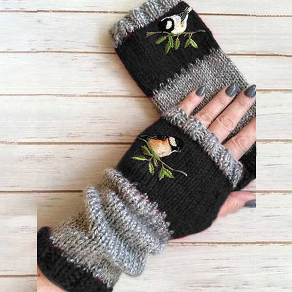 Fashion Contrast Color Embroidered Spliced Fingerless Gloves