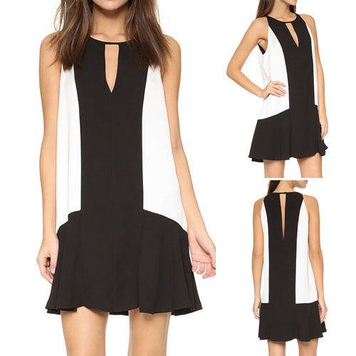 Contrast color style,with sleeveless,flouncing hem and a loose silhouette,stylish and