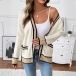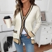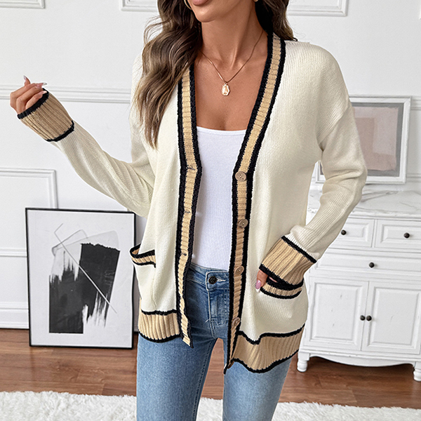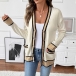 Fashion Contrast Color Front Button Patch Pockets Long Sleeve Knitted Cardigan