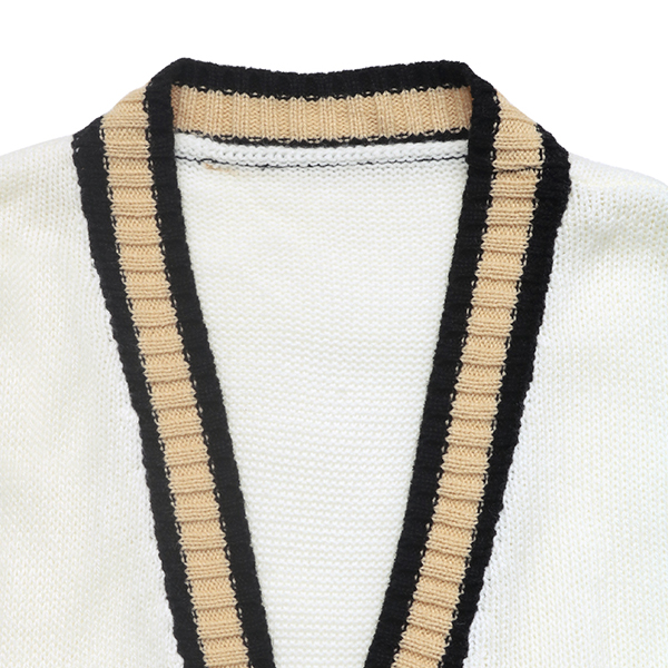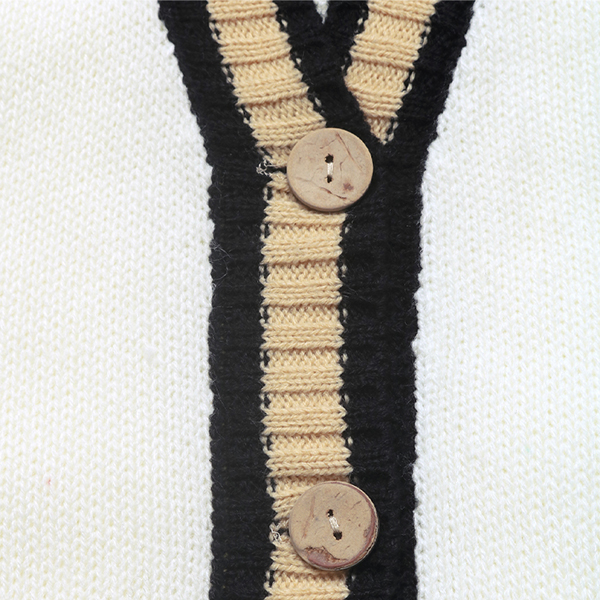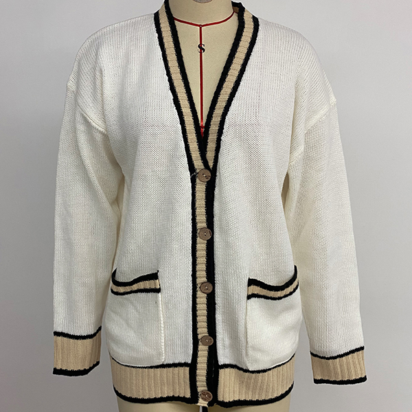 This eye-catching cardigan features distinctive color blocking that sets it apart from ordinary knitwear. Practical patch pockets add both style and functionality, while the classic button-front closure ensures versatile styling options. Crafted from quality knit fabric with comfortable long sleeves, this cardigan offers the perfect balance of warmth and breathability. Hope you like it.