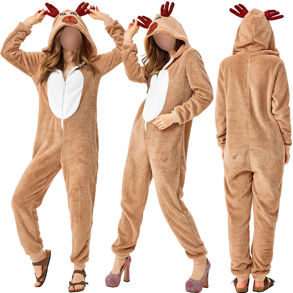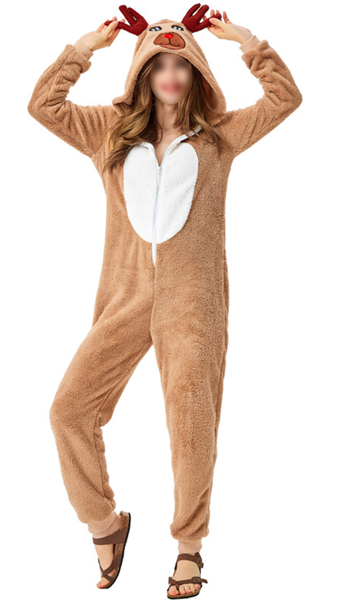 Get cozy and playful with this Elk Hood Pajamas Jumpsuit/Cosplay Costume. This adorable and comfortable jumpsuit is perfect for lounging around or even dressing up for a fun cosplay event.