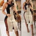 Fashion Contrast Color Front-zipper Slim Fit Sling Dress