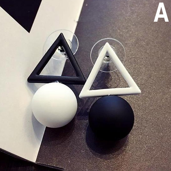 Fashion Contrast Color Geometric Shaped Asymmetric Stud Earrings