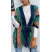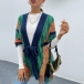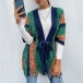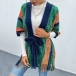 Fashion Contrast Color Half Sleeve Tassel Hem Stripe Shawl Cardigan
