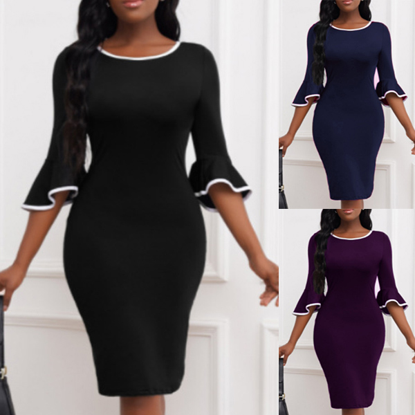If you're yearning for an instant style,then you can turn to this dress for help. Contrast color design makes it look not so simple and dull. Finished with half sleeve,v-neck and a fit silhouette,this dress not only can portray your elegant image,but also can portray your slender figure. So why not save this piece for your different occasions?
