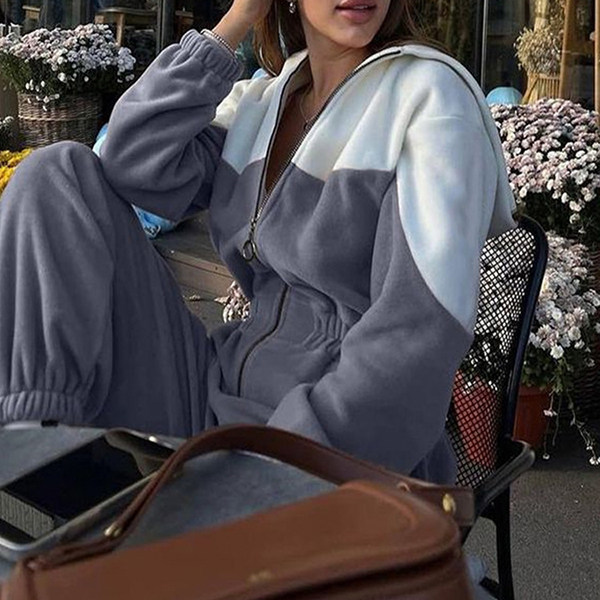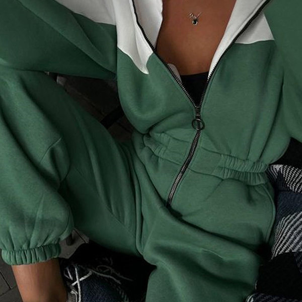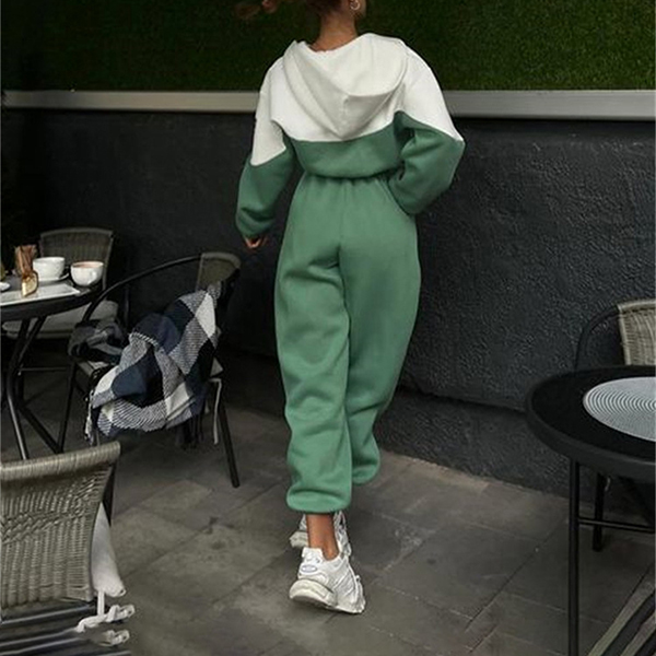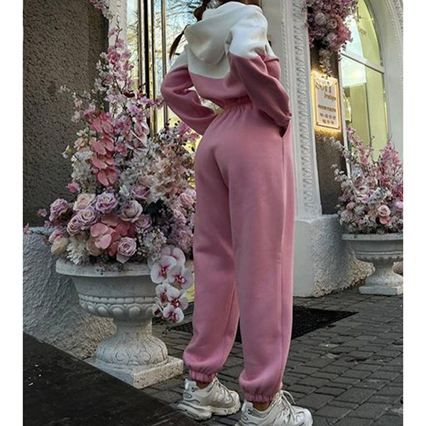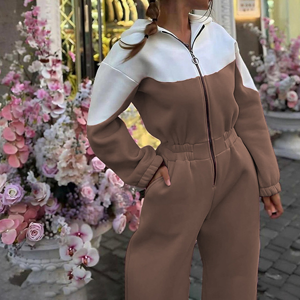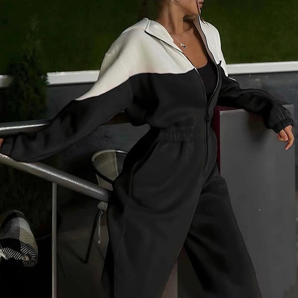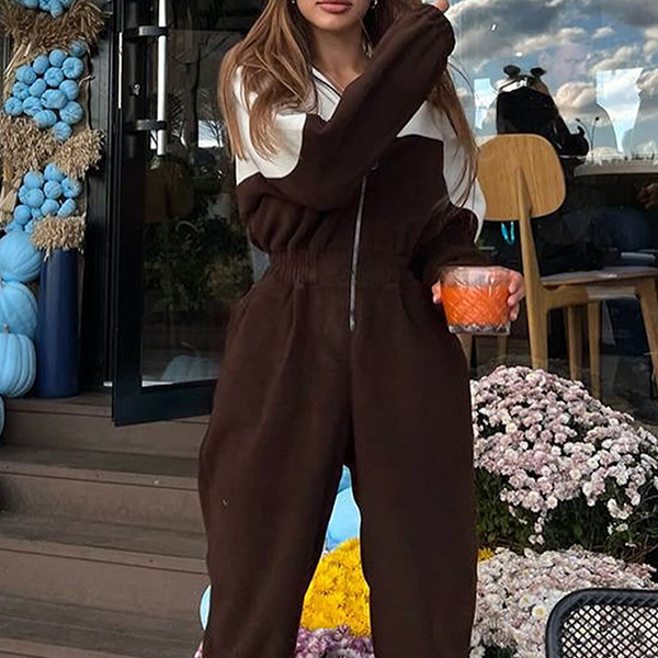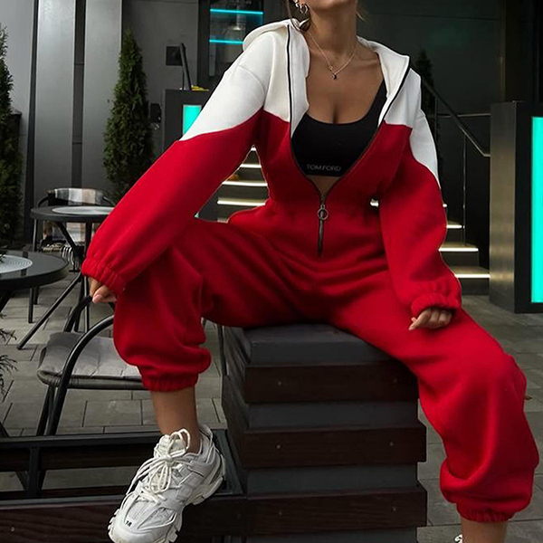Fashion Contrast Color Half-zipper Long Sleeve Hooded Jumpsuit