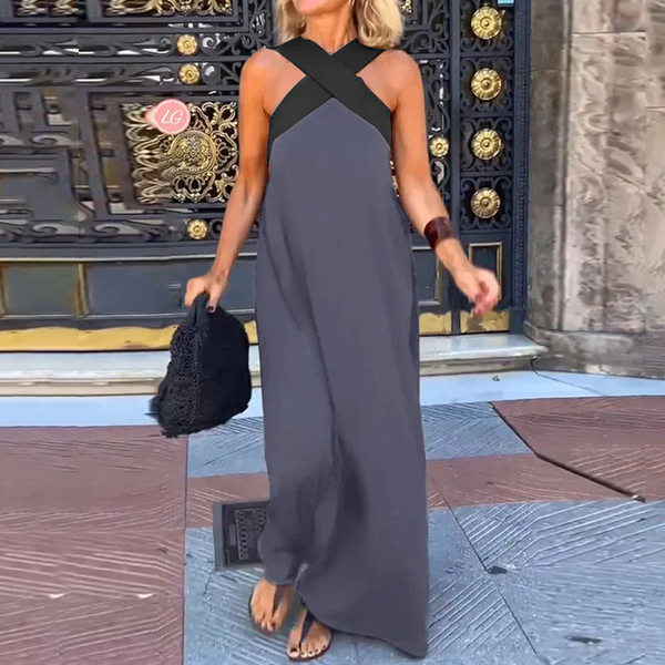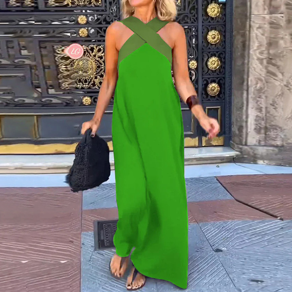 This is a chic and vibrant dress that exudes a playful and trendy vibe. The halter neck design with contrast color design offers a stylish and flattering silhouette, perfect for showcasing your shoulders and adding a touch of sophistication to your outfit. Multi-colors avaibile.