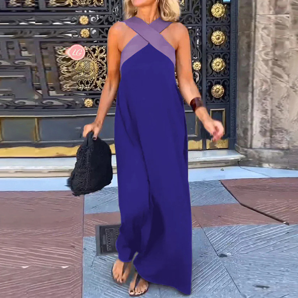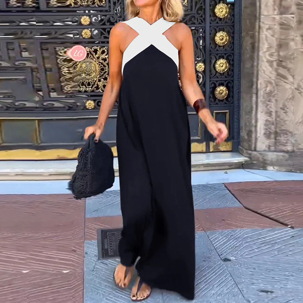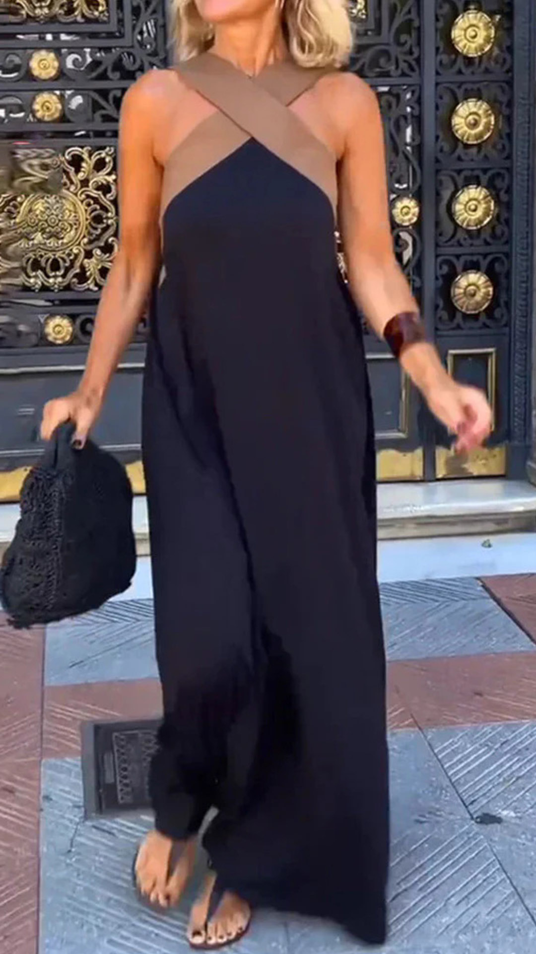 Fashion Contrast Color Halter Neck Sleeveless Mini Dress