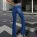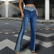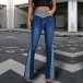 Fashion Contrast Color High-rise Flare Old-washed Denim Jeans