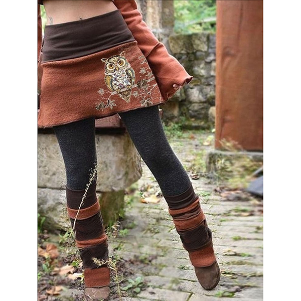 Fashion Contrast Color High-rise Mock-two-piece Leggings