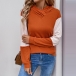 Fashion Contrast Color Hooded Long Sleeve Ribbed Sweatshirt