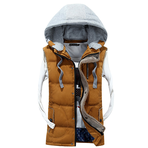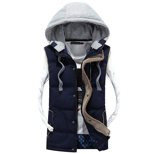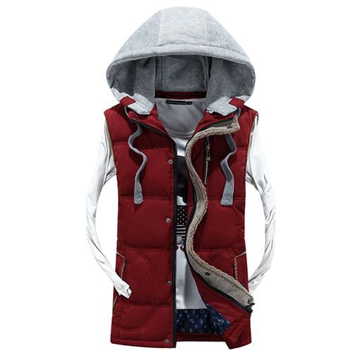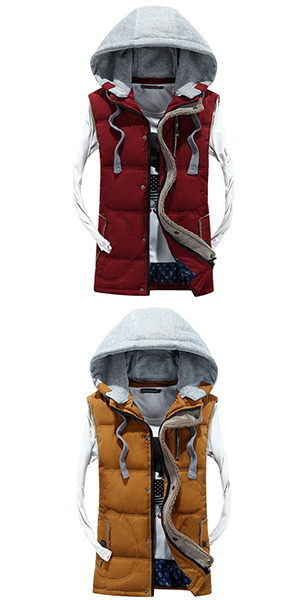 You can't go without this vest in your closet. Contrast color style,completed with a detachable hood,