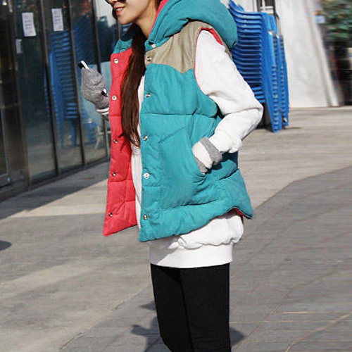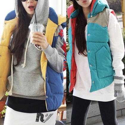 In those chilly days,how could you miss this vest? It features contrast color style,with hooded design,