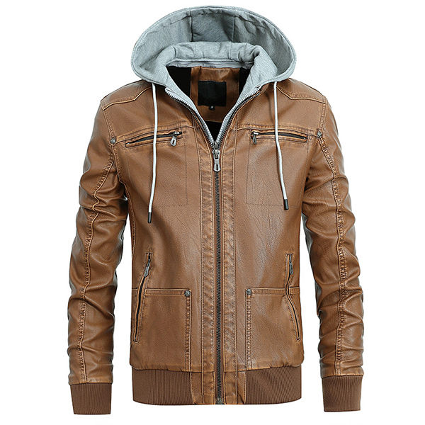 Fashion Contrast Color Hoodie Artificial Leather PU Jacket for Men