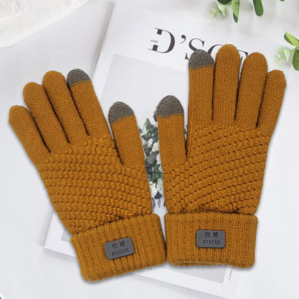 Crafted from soft,cozy knitted fabric,this pair of gloves can keep you hands warm. Contrast color element design makes it look so simple and dull. Another design highlight is that you can play your electronic products without wearing off the gloves.