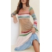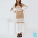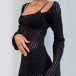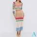 Fashion Contrast Color Knitted Hollow Out Midi Dress