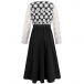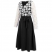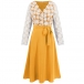 Fashion Contrast Color Lace Spliced V-neck Long Sleeve Self-tie Waist Dress