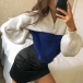When the days start to get cold,this knit top can be your perfect choice. Contrast color style,the lantern sleeve and stand collar design make this piece different from others. You can trust in this knit top to stay warm as well as maintain your style. It is perfect fit fit for you when you feel a little cold.