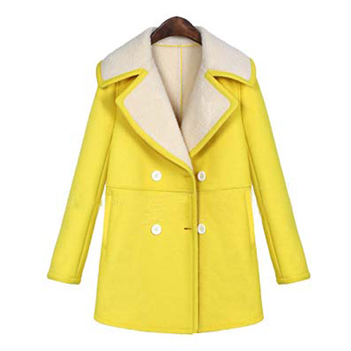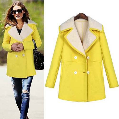 Maybe this woolen coat is your best choice. It features solid color,double-breasted