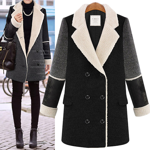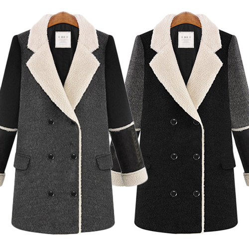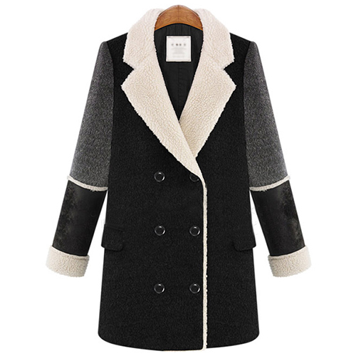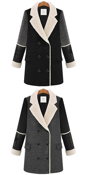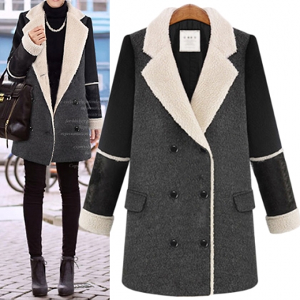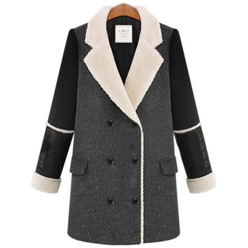 temperament. Styled with contrast color, lapel, and long sleeve design, the double-breasted construction