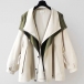 Fashion Contrast Color Lapel Long Sleeve Slant Zipper Button Closure Jacket for Women