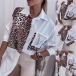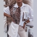 Fashion Contrast Color Leopard Printed Blouse