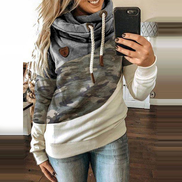 Make your wardrobe more complete by adding this sweatshirt. Contrast color and leopard printed details make this piece look more stylish and attractive. Finished with long sleeve and hooded silhouette,this piece can offer you a laid-back yet fashionable autumn look by teaming with a jeans.
