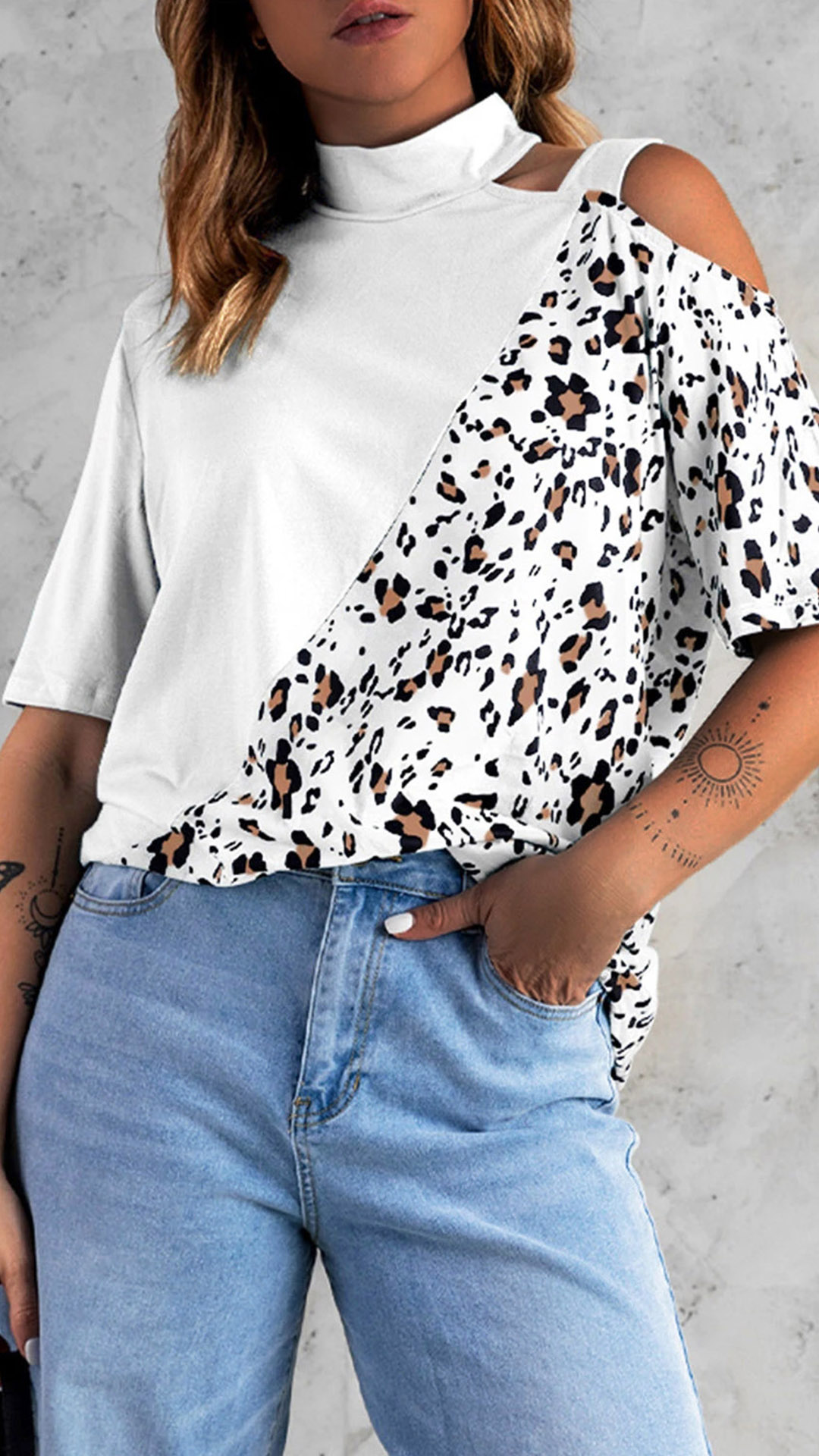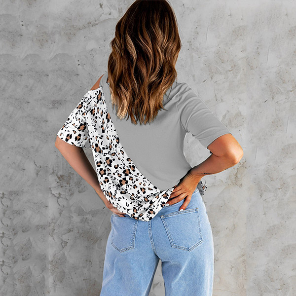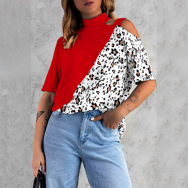 For dating, this shirt could be a good choice. Leopard printed spliced design, stand collar, open shoulder, sexy yet feminine. No matter matching with a shorts,skirts or jeans, you can look fashionable and charming enough!